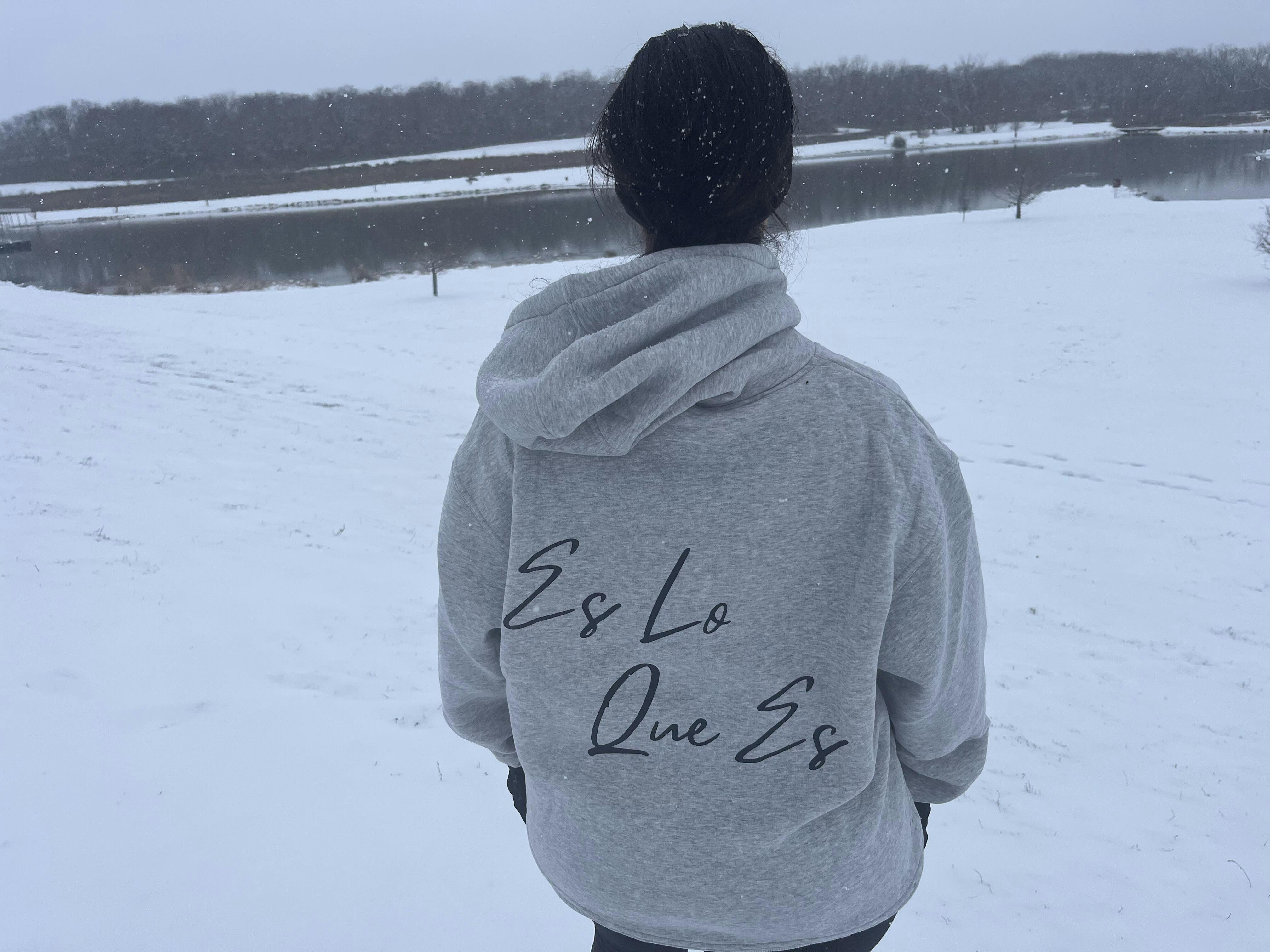 Super soft grey hoodie made from our luxurious cotton blend, designed for maximum comfort with "Ni Modo" on the front and "Es Lo Que Es" on the back.