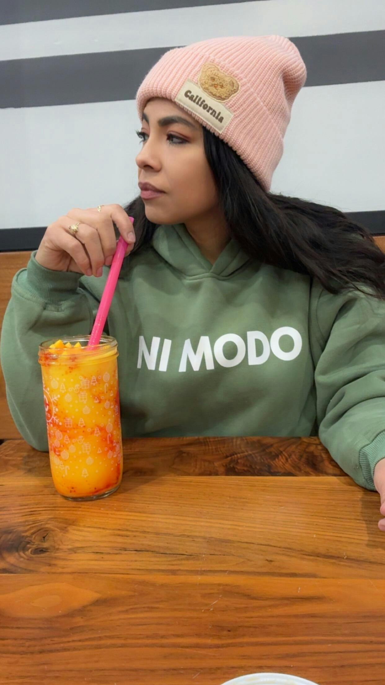 Super soft olive green hoodie made from our luxurious cotton blend, designed for maximum comfort with "Ni Modo" on the front and "Es Lo Que Es" on the back.